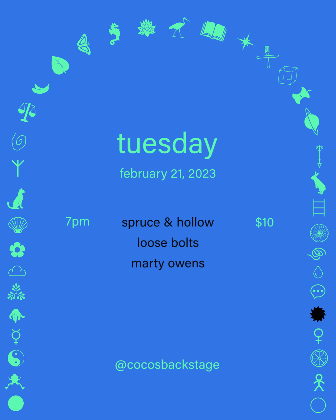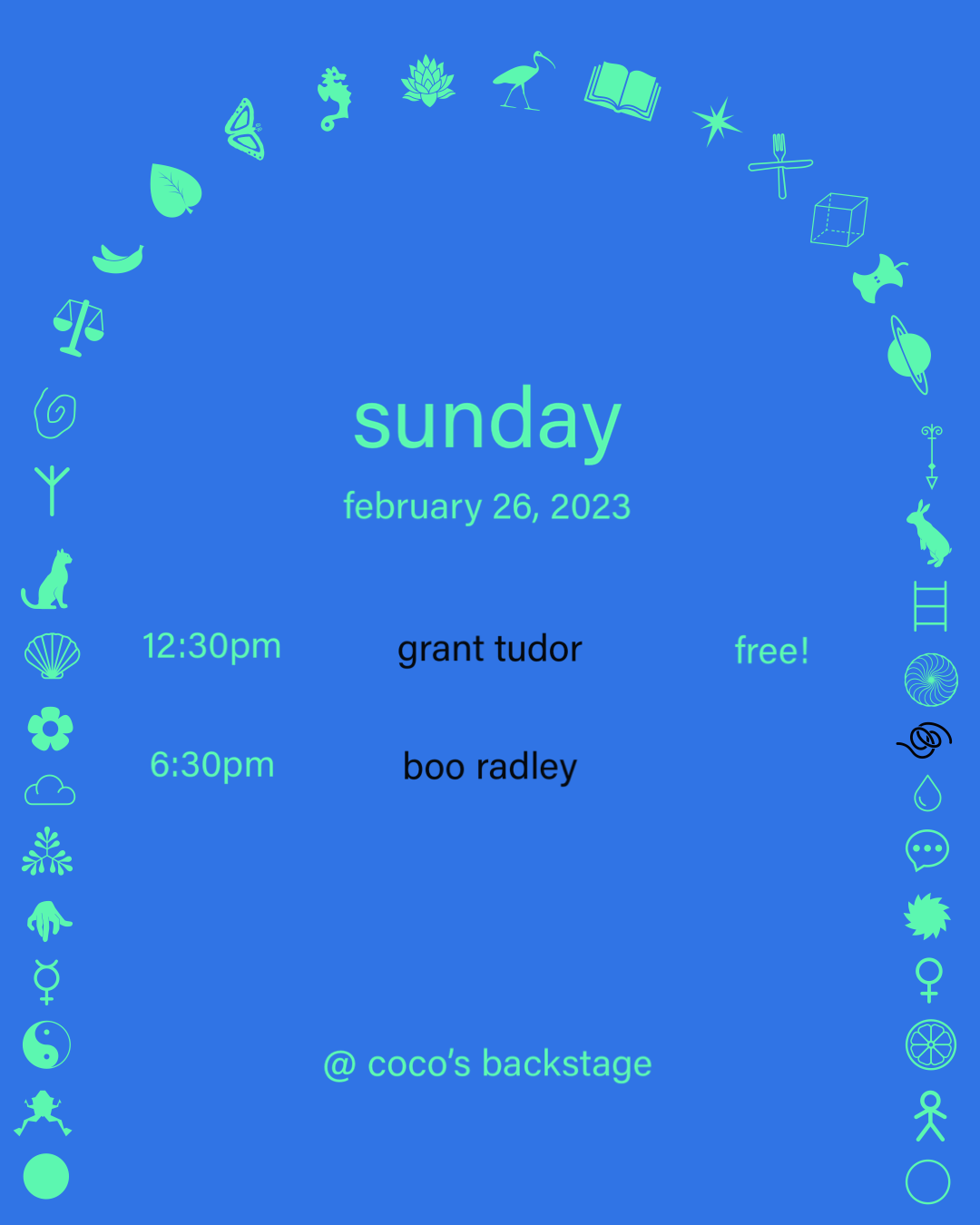 Swipe though-showcase of weekly performers at Coco’s Backstage.